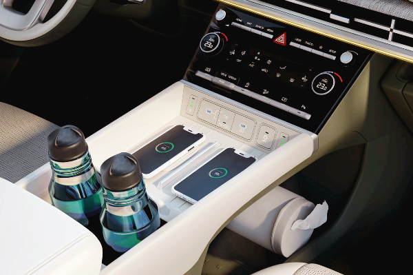 단순히 테일게이트만 뒤로 밀어서 내부 공간을 키운 것만은 아니다. 수납공간도 최대한 확보했다. 운전석에서부터 센터콘솔 크기를 키워 상하단으로 분리하는 치밀함을 보였다. 대시보드 상단에도 오픈형 수납공간과 밀폐형 수납공간 두 가지를 만들었다.