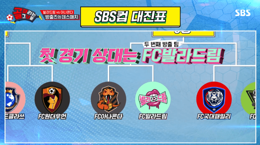 SBS컵 대회에서 지옥에서 돌아온 아나콘다팀과 지난시즌4에서 방출된 발라드림팀이 경기를 하게됐습니다.