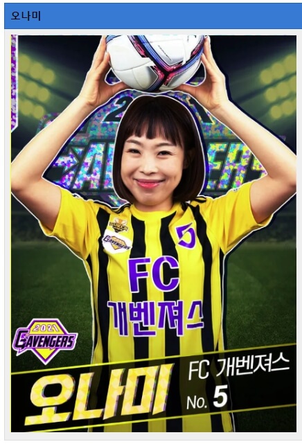 김민경: 자타공인 운동뚱. 즐라탄 이브라히모비치처럼 킥의 파워가 좋다. 시즌 1, 개벤져스팀의 유일한 득점 선수. 피지컬이 정말 우월하지만 스피드, 민첩성이 떨어져서 황선홍은 김민경을 수비로 배치했다.김민경 인스타
