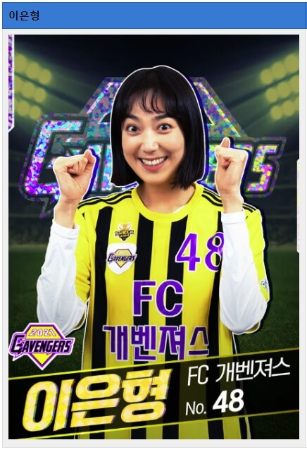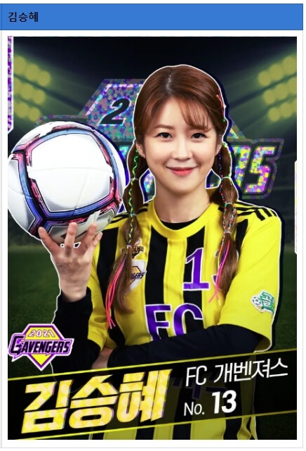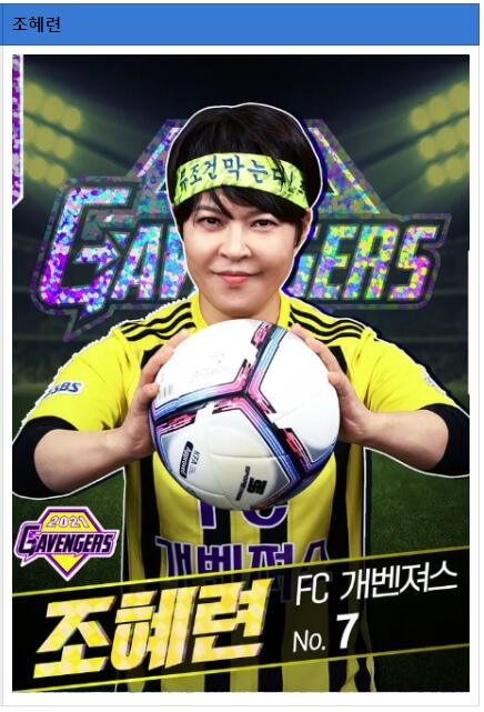 조혜련: 시즌 2에서 하차한 신봉선의 뒤를 이어 FC 개벤져스의 주장을 맡게 되었다. 시즌 3 올스타전 도중 당한 무릎 부상으로 인해 시즌 4에서는 선수로 뛰지 못하며, 회복할 때까지 팀의 골키퍼 코치로 함께하게 된다.조혜련 인스타