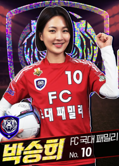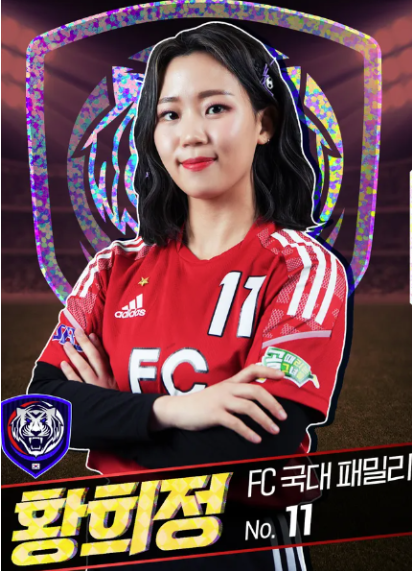 황희정:시즌 3 슈퍼리그에서 FC 국대 패밀리로 합류한 선수. 현재 축구선수로 활동하고 있는 황희찬의 친누나. 힘과 빠른 발은 일품이지만, 안타깝게도 단신에 유리몸이라는 치명적 신체 조건 때문에 오랫동안 고생하다가 뒤늦게 포텐셜을 터뜨린 선수이다. 시즌4 기준으로 국대 패밀리에서 최단신임에도 완력이 가장 강한 편이다.