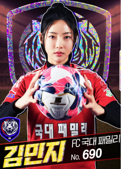 김민지:시즌 4 챌린지리그부터 FC 국대 패밀리에 새로 합류한 선수. 국가대표 출신 현직 육상 400m 선수이자 173cm의 장신이어서 합류 소식과 동시에 각종 커뮤니티에서 위기의 국대 패밀리를 구할 최후의 희망이라는 기대를 받았다. 플레이스타일은 엘링 홀란 혹은 다르윈 누녜스 정도라고 보면 된다. 왼발잡이, 173cm라는 좋은 피지컬과 훌륭한 힘, 현역 육상선수답게 차원이 다른 스피드. 큰 키임에도 남들이 머리를 쓸 상황에 머리보다는 발을 사용하는 성향까지 홀란과 제일 닮은 선수라는 평가를 받는다. 킥력도 상당한 편. 부정확한 볼터치와 패스라는 단점도 홀란과 똑같다. 김민지 인스타