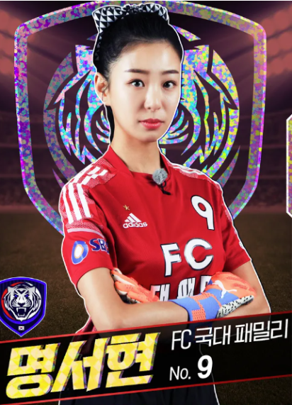 명서현:북한 축구 국가대표팀으로 뛰었던 정대세의 부인. 장점은 특유의 동물적 위치선정능력. 이 위치선정능력을 잘 살려 파일럿~시즌 1에서는 A급 포처로 활약했고, 골키퍼로 전향한 시즌 4에서는 안정적인 공중볼 처리로 국대패밀리의 뒷문을 든든히 지켜주었다. 다만 단점은 공격수로 있을 때 골잡이로서의 역할은 잘했지만 경기적인 영향력을 많이 끼치지는 못했다. 골도 첫 슈팅으로 넣는 스타일이 아니라 튀어나오는 세컨드볼을 득점하는 스타일이다 보니 슈팅 임팩트도 아쉬운 편이다. 심하은 못지않게 남편을 닮은 공격 본능을 보이고 있다.