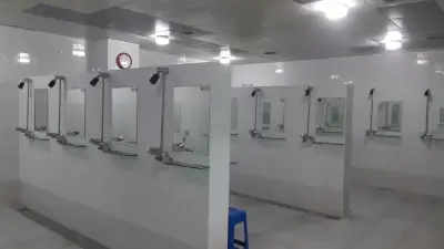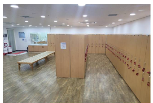 샤워장에 샤워기는 고정방식이고 버튼을 눌러서 몇 초간 물이 나오는 절수방식입니다. 탈의실 안에는 수영복을 탈수할 수 있는 탈수기가 두대 비치 되어 있어서 젖은 수영복을 탈수해서 가볍게 가져갈 수 있습니다.
