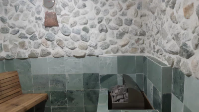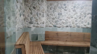 샤워실 옆편에 작은 사우나실이 배치돼 있습니다.