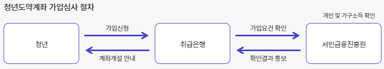 취급은행 앱을 통해 가입신청이 가능하며 별도서류 없이 개인소득 가구소득 확인 등의 절차를 진행합니다.