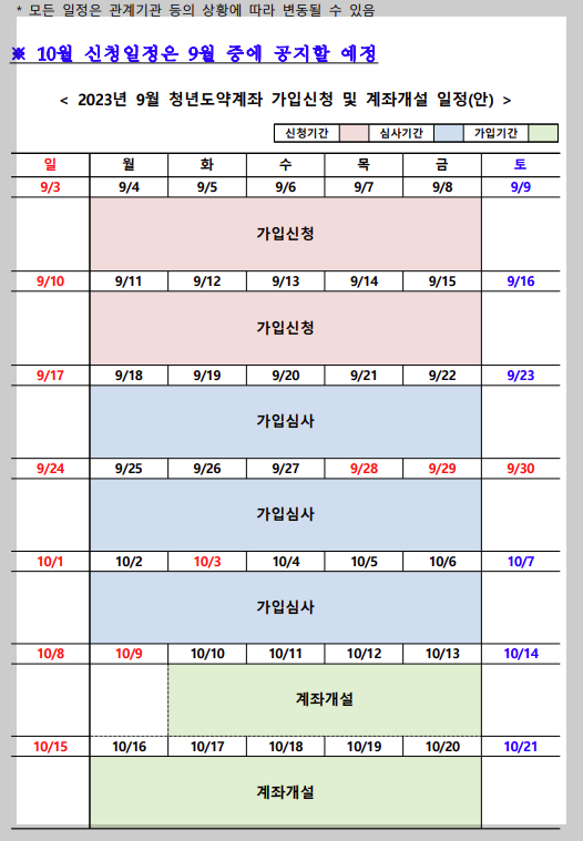 청년도약계좌 9월 가입신청 및 계좌개설 일정안내