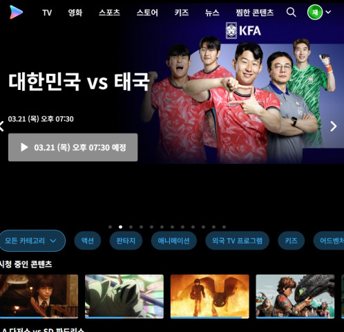 2024년 03월 21일 대한민국 태국 축구 중계하는 TV조선·쿠팡플레이