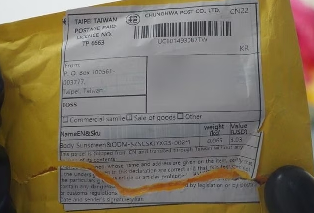 경찰청에 따르면 이 소포는 노란색 또는 검은색 우편 봉투에 싸여 있으며, ‘CHUNGHWA POST’라고 표시돼 있다. 발신인란은 비어 있고, 대만 타이베이(P.O.Box 100561-003777, Taipei Taiwan)에서 발신된 것으로 적혀있다.