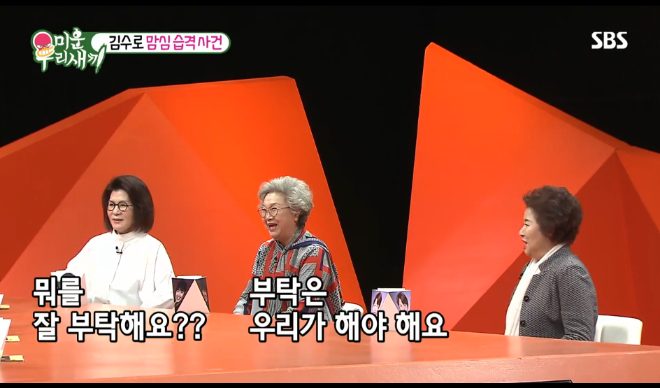 어머니들끼리 딴 이야기를 하는 것은 기본이고 임여순이 토크 도중에 화장실을 가거나 이선미가 당을 보충하려고 초콜릿을 꺼내는 등 방송의 정해진 틀이나 룰 따위는 다 깨버린다.