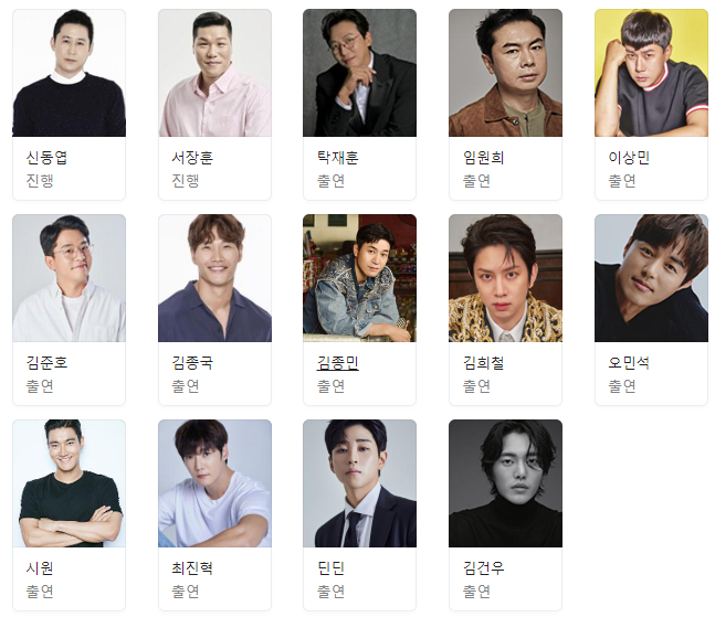| 우리새끼 | 이상민,김종국,김희철,딘딘,허경환 |