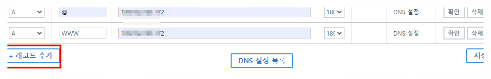 두 번째 레코드도 추가해서 호스트만 WWW로 바꿔서 설정 추가해 준다.