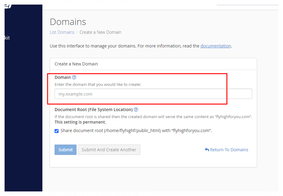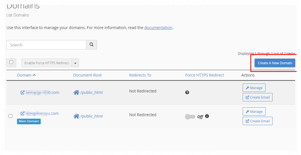 8. 이 화면에서 Create A New Domain (도메인 추가하기)를 선택하고