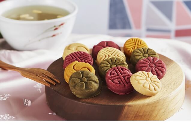 화과자는 다양한 색상과 복잡한 패턴으로 인해 보기만 해도 눈이 즐겁고 맛도 좋다.