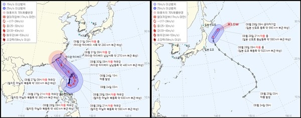 가을태풍 3개가 동시에 생겨나면서 우리나라에 미칠 영향에 관심이 쏠리고 있다.