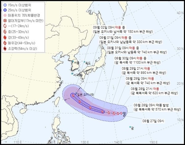 태풍으로 발달한 지 얼마 되지 않은 만큼 변동성이 큰 상황이다.
