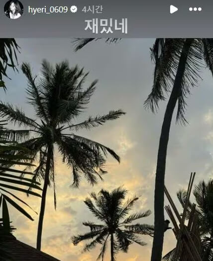 한소희의 입장 후 혜리는 자신의 인스타그램 스토리에 노을이 지는 하늘을 배경으로 한 야자수 사진과 함께 "재밌네"라는 글을 올렸다.