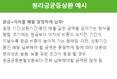 | 상환기간 | 대출신청자는 최장상환기간 내에서 연 단위로 생환기간 선택 |