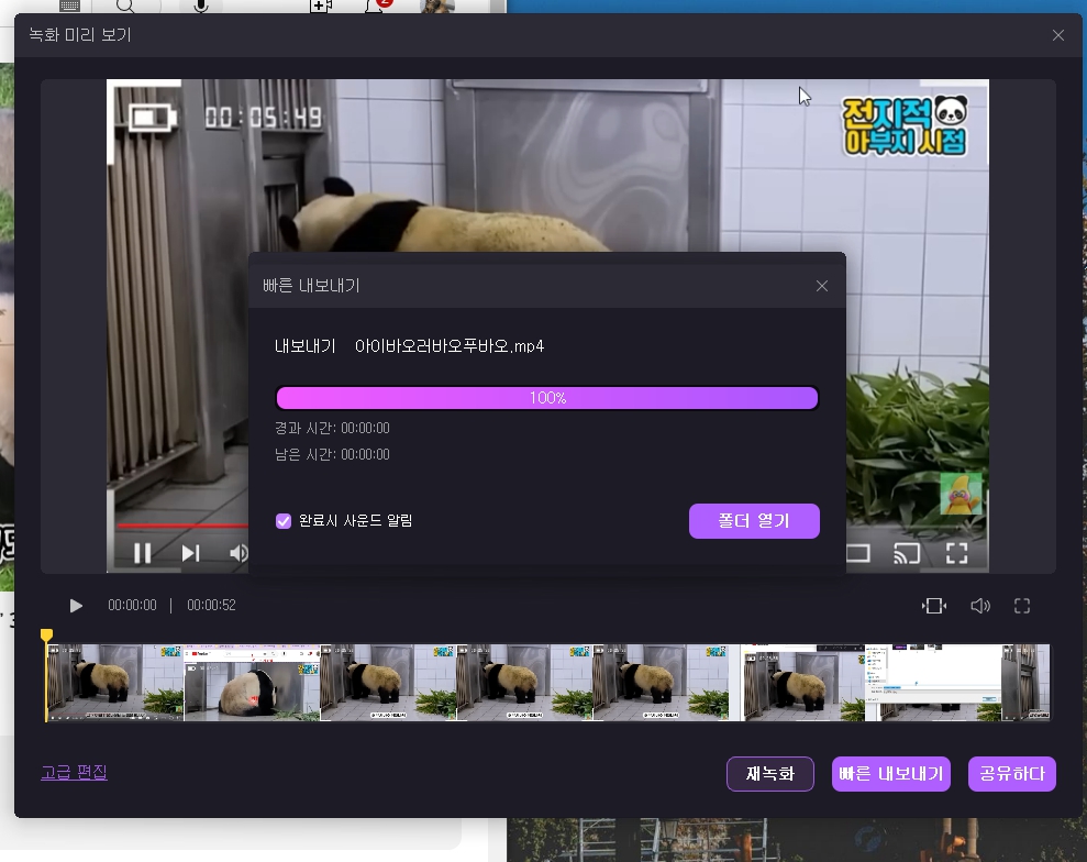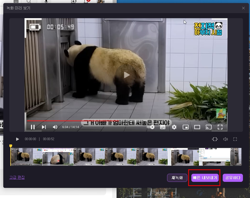 5. 정지버튼을 눌러서 녹화를 끝내고 빠른 보내기를 클릭합니다.
