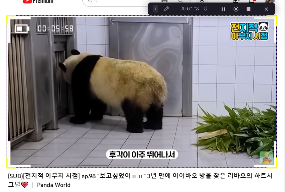 4. 녹화가 되는 화면 바로 위에 녹화시간과 정지 재생 일시정지 버튼이 나옵니다.