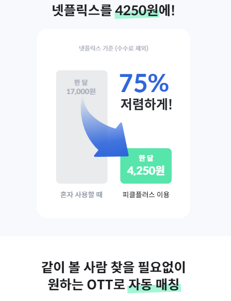 좀 더 싼가격으로 두가지 이상 OTT스트리밍을 이용하고 싶은 사람이라면 피클플러스를 추천한다.