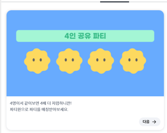 최근에 파티장으로 계정공유를 하려고 한 적이 있는데 모르고 간편 로그인으로 프리미엄 결제를 하는 바람에 공유가 안되고 원하지도 않는 4인용 프리미엄으로 더 비싸게 보게 된 적 있다. 나 같은 바보 같은 실수를 하지 않길 바란다.